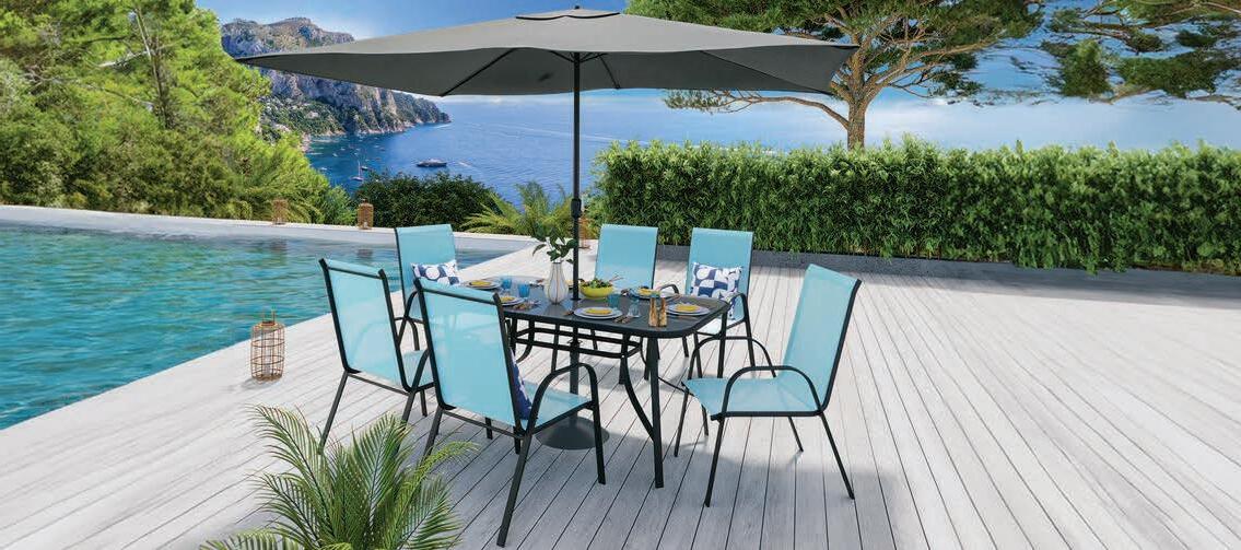 www.e-leclerc.si 2 1 *informativni izračun za obdobje 12 mesecev na dan 28. 3. 2024 12x 54,52 €* 599€ 99 ZNIŽANA CENA 999€ 99 400€ PREJŠNJA CENA 9-DELNA VRTNA GARNITURA • miza: aluminij, velikost (v x š x g): ca. 73 x 125 x 125 cm • 4x fotelj: aluminij, tkan PVC, velikost (v x š x g): ca. 85 x 55 x 60 cm • 4x tabure: aluminij, velikost (v x š x g): ca. 55 x 45 x 45 cm • blazine: poliester 249€ 99 ZNIŽANA CENA 349€ 99 100€ PREJŠNJA CENA 5-DELNA VRTNA GARNITURA • miza: jeklo, velikost (v x š x g): 72 x 140 x 80 cm • 4x stol: jeklo, tkan PVC, velikost (v x š x g): 80 x 49 x 54 cm MIZA • jeklo, steklo • velikost (Ø x v): ca. 60 x 71 cm 24€ 99 STOL • jeklo, polietilen velikost (v x š x g): ca. 78 x 54 x 57 cm 19€ 99 VRTNE GARNITURE 7 1 2