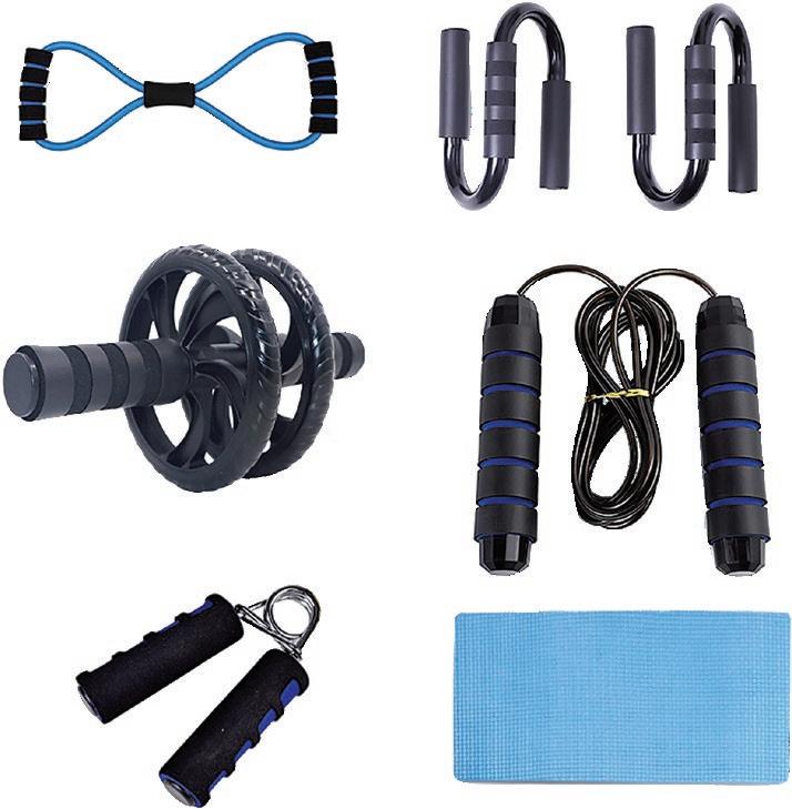 • vsebuje: vadbeno kolo, podlogo za kolena, kolebnico, push up ročke, elastiko za raztezovanje in ročne