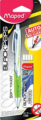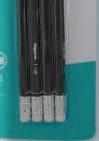 Tehnični svinčnik ima dober oprijem, kovinsko vodilo, ki ščiti konico pred lomljenjem in veliko radirko v vrtljivem mehanizmu.