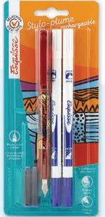 Pisalo ima štiri zamenljiva polnila v črni, modri zeleni in rdeči barvi.