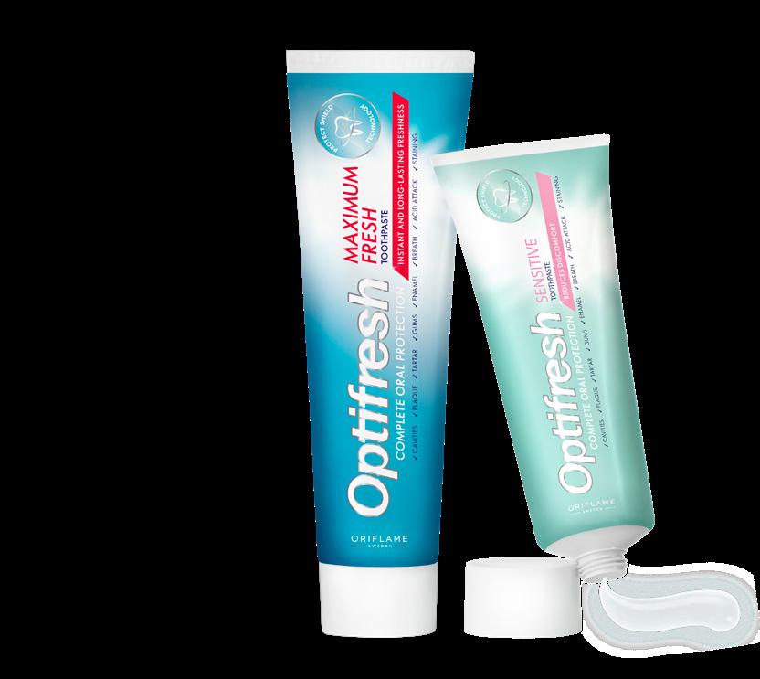 103 Optifresh Maximum Fresh zobna krema 100 ml 44952 6,00 € 3,79 € Optifresh Sensitive zobna krema 75 ml. 38873 6,00 € 3,79 € Optifresh All In One srednje mehka zobna ščetka 42445 3,50 € 1,99 € ŠČETKA SREDNJE MEHKOBE *Test uporabnikov 96% se strinja*