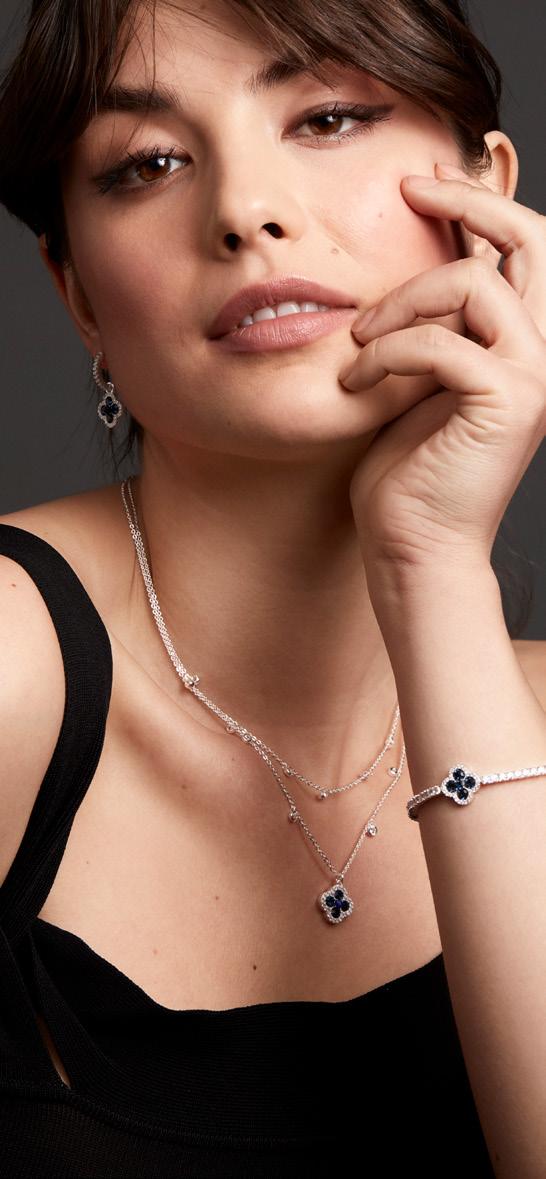 ZGODOVINSKI KAMEN Živahen modri odtenek lapisa je bil priljubljen skozi stoletja, od faraonov v Egiptu do renesančne Italije. V tej kolekciji je vstavljen v deteljico, kot bi jo presenetila zgodnja nordijska zima. Deteljica je snemljiva – obroče lahko nosite samostojno! Ogrlica ima dodatno dolžino verižice za boljšo prilagoditev. Z151kamni,odkaterih je vsakskrbnovstavljenroč no . Blue Lapis Ice Clover uhani Kubični cirkonij, medenina, srebrna prevleka, naravni kamen, steklo. 2,75 x 1,29 cm. 46275 43,00 € 31,99 € Blue Lapis Ice Clover zapestnica Kubični cirkonij, medenina, srebrna prevleka, naravni kamen, steklo. 20 x 1,28 x 1,28 cm. 46184 42,00 € 30,99 € Blue Lapis Ice Clover ogrlica Kubični