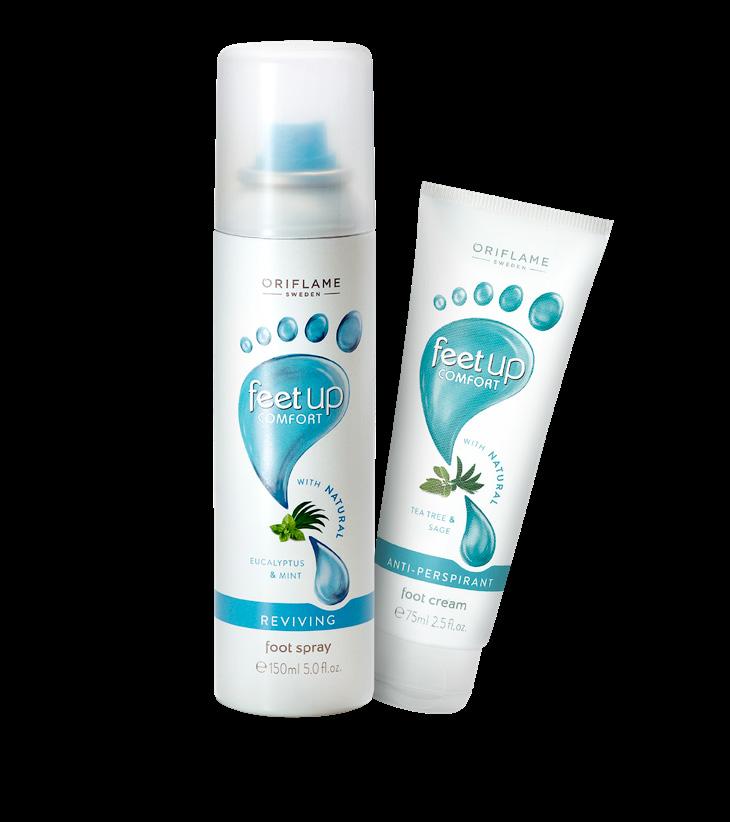102 Feet Up Comfort poživljajoč sprej za stopala 150 ml. 32372 8,50 € 4,99 € Feet Up Comfort antiperspirantna krema za stopala 75 ml. 32368 5,50 € 3,79 € Comfort pila za stopala Mere: 183 x 44 x 11 mm. Material: brusni papir, 50 % recikliran GPPS. 37559 3,50 € 2,29 € SoftCaress zaščitni čistilni gel za roke 50 ml. 42953 9,00 € 4,99 € Čistilni gel pomaga zmanjšati število bakterij in virusov 70% alkohol naravnega izvoraDEODORIRANA KREMA, ki ohrani stopala sveža in suha