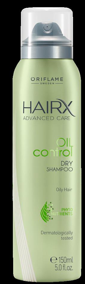 107 HairX Advanced Care Oil Control suhi šampon 150 ml. 32907 9,00 € 5,29 € V trenutku osvežite svoj stil *Test uporabnic 3. Pustite delovati nekaj minut, nato skrtačite. 2. S konicami prstov vmasirajte v lase. 1. Sprej pretresite in ga nanesite z razdalje 20 cm, osredotočite se na korenine las. UPORABA Ohranite lase sveže in čistebrez dodajanja vode! SUHI ŠAMPON • V trenutku zmanjša videz mastnih las* • Pomaga podaljšati intervale med umivanji* • Vsebuje poseben kompleks, ki uravnava tvorbo maščob