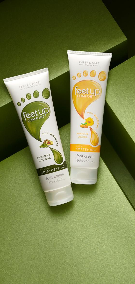 31347 31348 24 150 ml DNEVNA KREMA ZA STOPALA Mehča in vlaži stopala z naravnim izvlečkom arnike in jojobinim oljem. KREMA ZA UPORABO ČEZ NOČ Intenzivno vlaži in pomirja z avokadovim oljem in sokom listov aloe vere. VSAK SAMO 3,79 € 34935 Feet Up Comfort vlažilna nočna krema za stopala 150 ml. 7,50 € 32369 Feet Up Comfort dnevna mehčalna krema za noge 150 ml. 7,50 € Razvajajte svoje roke in stopala dan in noč z najboljšo nego. DO-54 % VSAK DAN