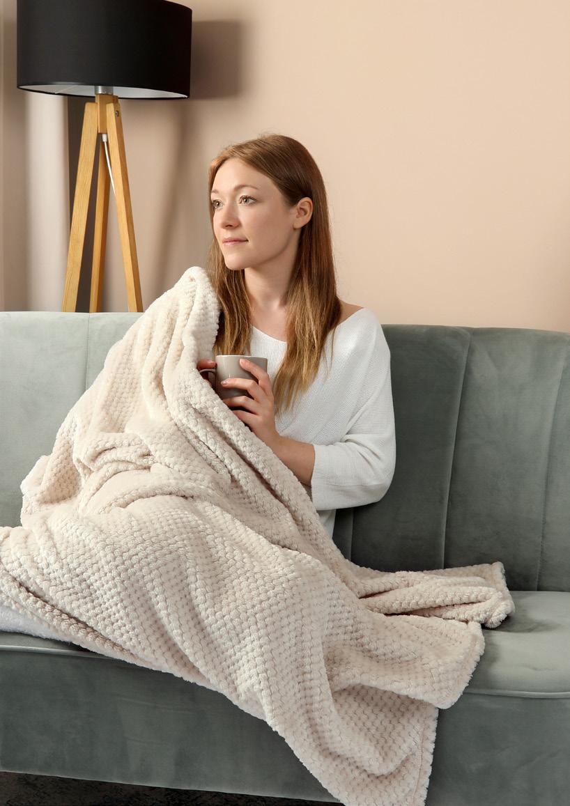 29 IZJEMNO MEHAK ODGOVOR NA MRZLE DNI Nekateri zimski dnevi so kot ustvarjeni za crkljanje doma s toplim napitkom in ob gledanju TV oddaje. Naredite si te trenutke še posebej prijetne z odejo iz flisa peščene barve. Delight Cosy odeja Poliester. 150 x 130 cm. 45772 34,00 € Udobna in topla Izjemno ujemajoča barva 130 cm 150 cm NOVO! OMEJENA IZDAJA
