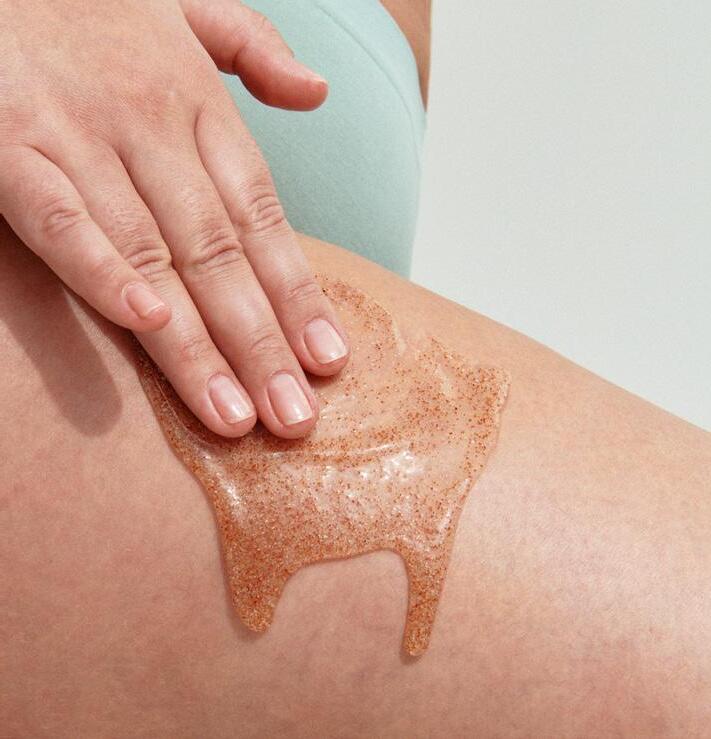 Na predelu nog in zadnjice s krožnimi gibi nežno vmasirajte v kožo.