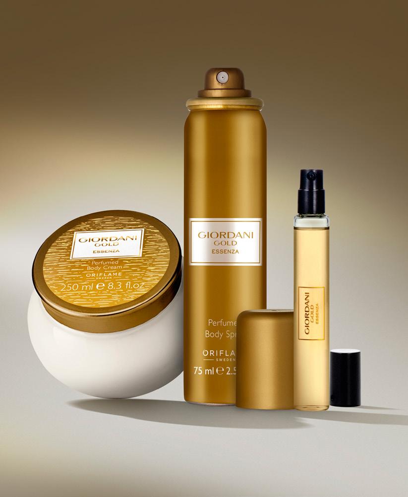 Giordani Gold Essenza odišavljena krema za telo 250 ml. 42206 9,50 € Giordani Gold Essenza parfum - torbična izdaja 8 ml. 42786 13,00 € Giordani Gold Essenza odišavljen sprej za telo 75 ml. 42806 9,50 €