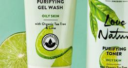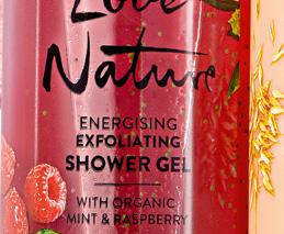 Love Nature poživljajoč gel za prhanje/piling z meto in malinami iz biološke pridelave