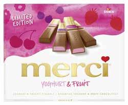 Ponudba velja za izdelke, ki so prisotni v rednem asortimanu poslovalnice PIŠKOTI MILKA • z mlečno čokolado • Mondelez • 184 g KEKSI BELVITA • s čokolado • z jagodo in čokolado • s čokolado in lešniki • z malino in chia semeni • z borovnico in lanenimi semeni • Mondelez • od 250 g do 270 g 2,49 851, % - 25 2,49 891, % - 24 MAGGI MEŠANICE ZAČIMB • več vrst • Nestlé • 30-50 g Redna cena: od 1,80 € MAGGI KREMNE JUHE • več vrst • Nestlé • 45-70 g Redna cena: od 1,38 € Ponudba velja za izdelke, ki so prisotni v rednem asortimanu poslovalnice. 25% PRIHRANEK 25% PRIHRANEK 1,59 -33% 2,39 SLANI KREKERJI GRANPAVESI • 250 g KVIKI PALČKE • 100 g 0,89 -18% 1,09 KEKSI PLAZMA MINI • več okusov • 45 g ali 55 g KEKSI BOOM BOX • več okusov • 50 g 0,71 -20% 0,89 REZINA FRUTABELA • marelica • višnja • 30 g 0,69 -12% 0,79 ČIPS LAY’S • več okusov • 140 g 1,89 -21% 2,42 MLEČNA ČOKOLADA JIMMY FANTASTIC • več okusov • 170 g ali 180 g 1,69 -22% 2,19 RIBICE GOLD FISCHLI • slane • s sezamom • 100 g 1,19 -20% 1,49 KEKSI Z VANILJEVIM POLNILOM • brez glutena • 115 g 1,69 -22% 2,19 SLANE PRESTICE SALINIS • brez glutena • 60 g 1,15 -20% 1,45 3,99 -20% 4,99 PISTACIJA ÜLTJE • pražena • soljena • 150 g 0,79 -11% 0,89 17