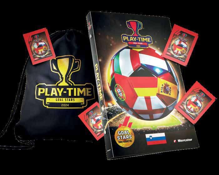 Zagotovite si komplet Play-time z večnamensko vrečko in zbirateljsko mapo za nogometne kartice. Za vsakih 10 € in za vsak nakup izdelka z oznako Play-time prejmete eno nogometno kartico Play-time. Aktivnost poteka od 16. 5. do 17. 7. 2024 oziroma do razdelitve vse zaloge nogometnih kartic Play-time.