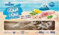 *Cena izdelka je odvisna od konkretne teže posameznega izdelka in se preračuna glede na veljavno redno ceno za kg. toploteka RIBARNICA Oslič file postrežen, cena za kg -22% 16 99 21,99 RIBARNICA Lignji patagonika očiščeni, zamrznjeni, cena za kg -33% 9 99 14,99 RIBARNICA Kozice Black Tiger postrežene, cena za kg -26% 13 99 18,99 LOSOS AVOKADO 2 KOSA MORTADELA SIR 2 KOSA