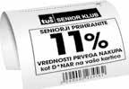 v franšiznih mesnicah, ki jih le-te dajejo v najem. SREDA -11 % D*NAR NA TUŠ KLUB KARTICO: Za ugodnost, pri kateri člani Tuš Senior kluba pridobijo 11 % vrednosti prvega dnevnega nakupa kot D*NAR na Tuš klub kartico, veljajo enaki pogoji kot pri kuponu 10 - 99 %, vendar brez omejitve višine nakupa. Ugodnost se članom Tuš Senior kluba obračuna samodejno, brez predložitve kupona. Senior izdelek je na izbran dan na voljo do razprodaje zalog. Ob nakupu se kuponi in ostale ugodnosti ne obračunajo. Več na www.tus.si. TUŠ SENIOR KLUB Murska Sobota