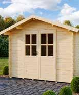 Vrtna hiška JAGER 2828 mere podzidka 280 cm x 280 cm, mere z nadstreški 336 cm x 329 cm, debelina sten 28 mm, višina slemena 233 cm, višina