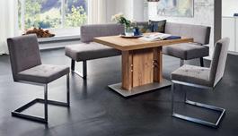 Miza, svetel hrast, soft, krtačena in oljena, kovinsko ogrodje: mat antracit, mere: 220x100 cm, na voljo v različnih izbedbah in velikostih, 197684/3 Stol, tkanina, sivo-rjava, ogrodje: mat antracit, vklj. nasloni za roke, ŠxVxG: 58x87x63 cm, na voljo v različnih izvedbah in barvah, 197684/1.