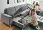 garnitura, tkanina, siva, noge: oljen hrast, mere: 165x300x198 cm, na voljo kombinacijah. Pravi hrbet, motorična funkcija, posteljna funkcija, predal za posteljnino,