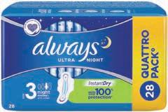 HIGIENSKI VLOŽKI ALWAYS ultra night 24/1 ali 28/1, super plus 32/1, normal plus ali sensitive normal plus 40/1