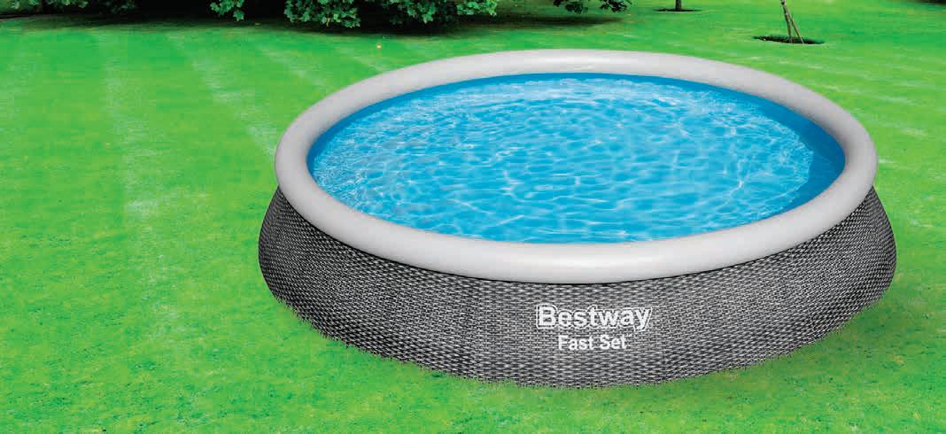• s filtrirno črpalko • premera 396 cm ter globine 84 cm • stranske stene odporne na predrtje • UV odporen • realističen pleteni tisk iz ratana na zunanjih stenah