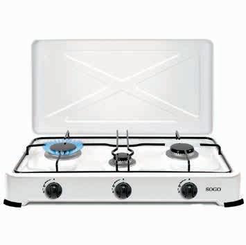 • 3 gorilniki • gumb za VKLOP/IZKLOP in nadzor plamena • s pokrovom