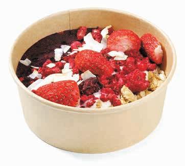 sestavine: chia semena, mandljev napitek, javorjev sirup, borovnice, pražen kokos, SPAR musli protein z rdečim sadjem, jogurt na sojini osnovi, liofi lizirano sadje