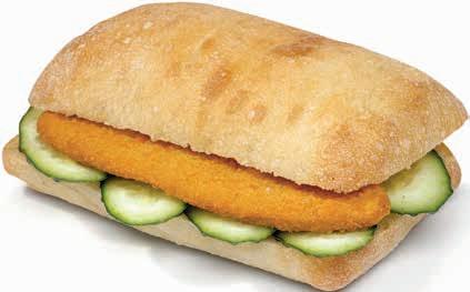 sestavine: ciabatta, ocvrti piščančji fi le, tatarska omaka, sveže kumare