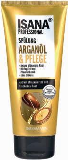 Privoščite svojim suhim in poškodovanim lasem razkošno nego, ki jo zagotavlja cenjeno arganovo olje v kombinaciji z izbranimi sestavinami kakovostne lasne kozmetike ISANA. Arganovo olje je pravi negovalni eliksir, ki nežno objame, neguje in zaščiti lase vse do konic. Pomaga ohraniti vlažnost in s tem mehkobo vaših las, vrača jim voljnost in nežno prožnost, da znova zasijejo v vsej svoji lepoti.