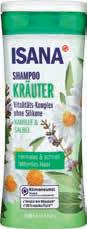 ISANA ŠAMPON ZA LASE ZELIŠČA Negovalna formula z ekstraktom kamilice, žajblja in koprive za normalne do mastne lase. 300 ml