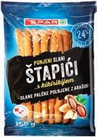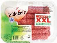 BBQ SVINJSKI VRAT V MARINADI brez kosti, pakirano ali postrežno, lastna priprava, 1 kg Pop ust se obračuna pri blagajni. redna cena 11,39 SPAR plus kartico 6 89 CENEJE 39% s SPAR plus kartico LESKOVAČKI ČEVAPČIČI pakirano, Z ' dežele, 960 g; XXL 480 g + 480 g GRATIS 6 99 CENEJE 33% s SPAR plus kartico SARAJEVSKI ČEVAPČIČI pakirano, AVE Grill, 480 g ČEVAPČIČI PIKNIK DVOJČEK pakirano, AVE Grill, 720 g; XXL 480 g + 240 g GRATIS MINI BURGER pakirano, AVE Grill, 480 g redna cena 6,39 s SPAR plus kartico 5 09 redna cena 7,39 s SPAR plus kartico 5 49 redna cena 5,99 s SPAR plus kartico 4 49 FRANKFURTER XXL postrežno, 1 kg Popust se obračuna pri blagajni. redna cena 13,89 s SPAR plus kartico 966 CENEJE 20% s SPAR plus kartico CENEJE 25% s SPAR plus kartico CENEJE 25% s SPAR plus kartico CENEJE 30% s SPAR plus kartico GOVEJI BURGER pakirano, 300 g redna cena 7,19 SPAR plus kartico 5 99 PREVERJENO NA BIOTEHNIŠKI FAKULTETI V LJUBLJANI • iz slovenskega zorjenega mesa • brez aditivov CENEJE 16% s SPAR plus kartico KAMNIŠKI ODŠČIPANCI z mesnato slanino, pakirano, Meso Kamnik, 400 g redna cena 7,49 s SPAR plus kartico 4 99 TEXAS STEAK IK pakirano, Perutnina Ptuj, 500 g redna cena 6,29 s SPAR plus kartico 4 39 FIT NABODALCA IK pakirano, Perutnina Ptuj, 400 g redna cena 4,98 s SPAR plus kartico 3 99 CENEJE 30% s SPAR plus kartico CENEJE 19% s SPAR plus kartico