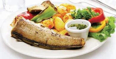 PEČEN OSLIČ, ZELENJAVA Z ŽARA, KROMPIR IZ PEČICE