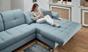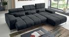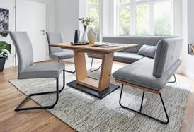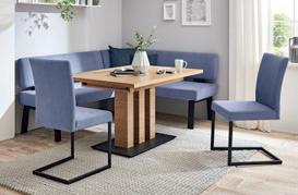 Kotna klop, tkanina, Clever Clean svetlo modro, les: bukev/črna, mere: 203x156 cm, na voljo v različnih izvedbah in barvnih kombinacijah, 197665/1 . Miza, furniran hrast, naraven, s črno osnovno ploščo, raztegljiva, mere: 130/178x90x75 cm, na voljo v različnih izvedbah in velikostih, 197665/2