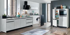 Kuhinja, barva: beton - bela, 270x120 cm, vklj. z vsemi navedenimi inoks električnimi aparati, na voljo v različnih postavitvah in barvnih kombinacijah. Pomivalni stroj ter pomivalno korito za doplačilo, 194826/1