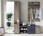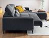 Kotna klop, tkanina, siva, lesena letev v hrastu, ogrodje: črno, mere: 207x154 cm, na voljo tudi v barvi grafit, 197687. Stol, tkanina, siva, ogrodje: črna okrogla cev, z valovitimi vzmetmi v sedišču, na voljo tudi v barvi grafit, 197687/2