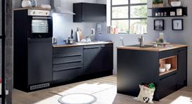 Kuhinja, motno črna, širina 260 cm. Vgradni aparati ter pomivalno korito za doplačilo, 195638 Kuhinjski otok, širina 145 cm. Vgradni aparati ter pomivalno korito za doplačilo, namesto 869,- zdaj 499,-, 195638/1