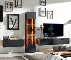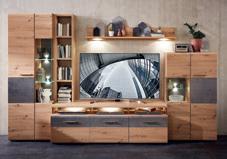Kuhinja, motno lakirana fronta v črni barvi/divji hrast, 312x430x315 cm, vklj. z vsemi navedenimi inoks električnimi aparati, na voljo v različnih postavitvah in barvnih kombinacijah. Pomivalni stroj ter pomivalno korito za doplačilo, 189990/1