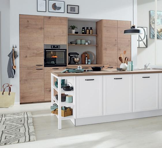 Kuhinja, barva: bela/hrast, 252+262 cm, vklj. z vsemi navedenimi inoks električnimi aparati, na voljo v različnih postavitvah in barvnih kombinacijah. Pomivalni stroj in pomivalno korito za doplačilo, 195047/195137