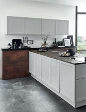 Kuhinja, barva: siv lak/motno platinasta, ca.240+305+240 cm, vklj. z vsemi navedenimi inoks električnimi aparati, na voljo v različnih postavitvah in barvnih kombinacijah. Pomivalni stroj ter pomivalno korito za doplačilo, 195599/195151