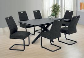 Stol, tkanina, barva: vintage antracit ali blatna, črno ogrodje, ŠxVxG: 49x100x61 cm, 195092, 195092/1. Miza, steklena plošča, vzorec: keramika, kovinsko ogrodje: antracit, raztegliva, višina: 76 cm, mere: 140/180x90 cm, 194645