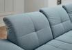 Sedežna garnitura, tkanina, svetlo modra, noge: krom, mere: 305x184 cm. nastavljivi nasloni za glavo, posteljna funkcija, predal za posteljnino, motorična nastavljivi nasloni za roke, tabure in blazine za doplačilo, 195994/1