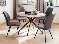Stol, tkanina, peščena barva, ogrodje: antracit, lakirano, 198353/1 . Miza, barva: hrast, ogrodje: antracit, ø: 120 cm, 198353/5.