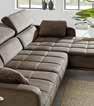 Sedežna garnitura, tkanina, rjava, vklj. posteljno funkcijo, predal za posteljnino in 3 hrbtne blazine, ležalna površina: 133x198 cm, mere: 243x155 cm, montaža desno ali levo možna, na voljo v različnih postavitvah in barvnih kombinacijah, 198838