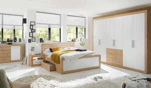 Kuhinja, barva: magnolija lak visoki sijaj/divji hrast, 310x300 cm, vklj. z vsemi navedenimi inoks na voljo v različnih postavitvah in barvnih kombinacijah. Pomivalni stroj ter pomivalno korito