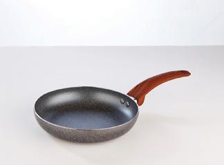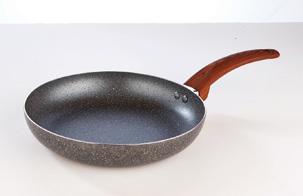 3 - DELNI SET PONEV iz kvalitetnega kovanega aluminija, z notranjim marmornim premazom proti prijemanju hrane, odporen na praske, ergonomski ročaji v videzu lesa omogočajo dober oprijem in se ne segrevajo