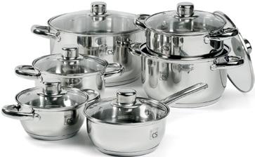 SET POSODE 12/1 iz kvalitetnega nerjavečega jekla, kombinacija visoki sijaj/mat, priložene so steklene pokrovke, set vsebuje: kozice cca 14 cm, 16 cm, 18 cm, 20 cm in 24 cm, ter kozico z dolgim ročajem 16 cm