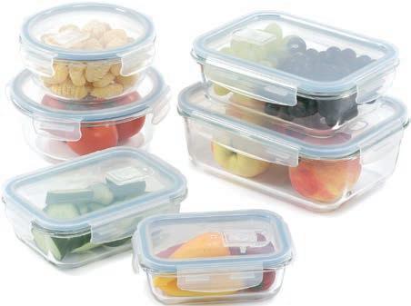 • iz kvalitetnega borosilikatnega stekla, ki je odporno na toploto do 400 °C, razen pokrova, ki je enostaven "click&close" in zagotavlja ohranjanje svežine