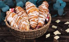 POLNILOM x 4: listnato kvašeno pecivo, polnjeno s čokolešnikovim polnilom, preračunana cena za kos 90 g = 1,05 €