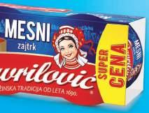 SUPER! VSE POLI HRENOVKE popust se obračuna na blagajni PREKAJENI VRAT ANTON cena za kg 9€ 99 CENA PO ODŠTETEM BONU 14€ 61 BON E Leclerc na kartico E.Leclerc 30% CENA, KI JO PLAČATE KAJŽARSKA KLOBASA ANTON 480 g 4€ 55 ZNIŽANA CENA 6€ 07 25% PREJŠNJA CENA PREKAJENA SVINJSKA REBRA MESARSTVO ČADEŽ cena za kg 11€ 99 CENA PO ODŠTETEM BONU 14€ 99 BON E Leclerc na kartico E.Leclerc 20% CENA, KI JO PLAČATE PREKAJENA ŠUNKA ALI VRAT PIK VRBOVEC cena za kg 7€ 59 CENA PO ODŠTETEM BONU 9€ 49 BON E.Leclerc na kartico E.Leclerc 20% CENA, KI JO PLAČATE VELIKONOČNA KLOBASA MESARSTVO ČADEŽ cena za kg 10€ 99 ZNIŽANA CENA 14€ 39 23% PREJŠNJA CENA PREKAJENA PREDNJA SVINJSKA KRAČA MESARSTVO ČADEŽ cena za kg 4€ 39 CENA PO ODŠTETEM BONU 5€ 49 BON E Leclerc na kartico E.Leclerc 20% CENA, KI JO PLAČATE PENA IZ RAČJIH JETER 80 g 3€ 99 CENA PO ODŠTETEM BONU 4€ 99 BON E.Leclerc na kartico E.Leclerc 20% CENA, KI JO PLAČATE ZIMSKA SALAMA PIK • narezek 100 g 2€ 19 ZNIŽANA CENA 3€ 28 33% PREJŠNJA CENA ZREZKI IZ PIŠČANČJIH BEDER PERUTNINA PTUJ NATUR 800 g 5€ 68 ZNIŽANA CENA 9€ 63 41% PREJŠNJA CENA 0€ 00 CENA PO ODŠTETEM BONU 0€ 00 BON E.Leclerc na kartico E.Leclerc 20% CENA, KI JO PLAČATE PIŠČANČJE MESO PO ITALJANSKO PERUTNINA PTUJ NATUR PREMIUM 800 g 4€ 39 CENA PO ODŠTETEM BONU 5€ 49 BON E Leclerc na kartico E.Leclerc 20% CENA, KI JO PLAČATE 13 www.e-leclerc.si NAŠA ZNAMKA 2x 40 g