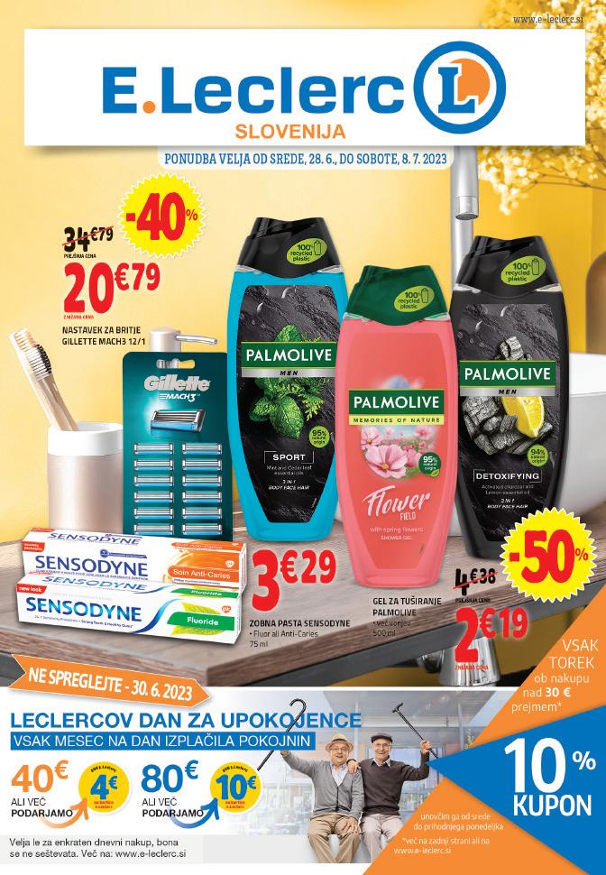 na vhodu vašega hipermarketa E.Leclerc. SLOVENIJA www.e-leclerc.si Ponudba velja od 28. 6. do 8. 7. 2023. NE SPREGLEJTE: V SPLETNEM KATALOGU VAS ČAKA ISTO ŠTEVILO IZDELKOV KOT VEDNO TEKOČI SADNI JOGURT MU različni okusi 1000 g 1€ 25 CENA PO ODŠTETEM BONU 1€ 78 BON E.Leclerc na kartico E.Leclerc 30% CENA, KI JO PLAČATE PIŠČANČJI ZREZKI IZ BEDER PERUTNINA PTUJ NATUR 800 g 4€ 99 CENA PO ODŠTETEM BONU 6€ 24 BON E.Leclerc na kartico E.Leclerc 20% CENA, KI JO PLAČATE HLAJENO HLAJENO 40€ BON E Leclerc na kartico E.Leclerc 4€ ALI VEČ PODARJAMO 80€ BON E Leclerc na kartico E.Leclerc 10€ ALI VEČ PODARJAMO E. Leclercov dan za upokojence VSAK MESEC NA DAN IZPLAČILA POKOJNIN 30. 6. 2023 Velja le za enkraten dnevni nakup, bona se ne seštevata. Več na www.e-leclerc.si
