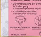 • vsebuje inovativno kombinacijo izvlečka ameriške brusnice, D-manoze, izvlečka listov breze in vitamina C v visokih koncentracijah varen za uporabo pri nosečnicah in doječih ženskah