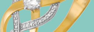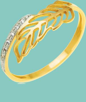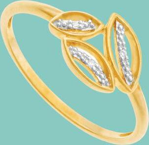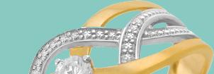 prstan z diamanti 0,03 ct, velikost: 14, rumeno zlato in rodij 1,25 g