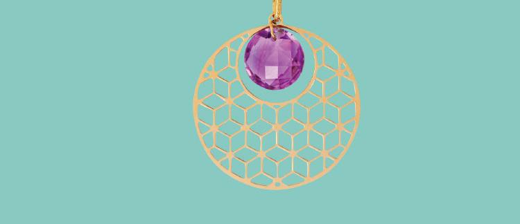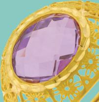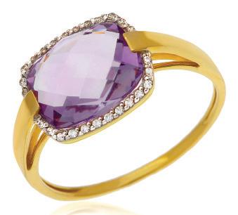 prstan z ametistom, velikost: 14, rumeno zlato in rodij 1,90 g